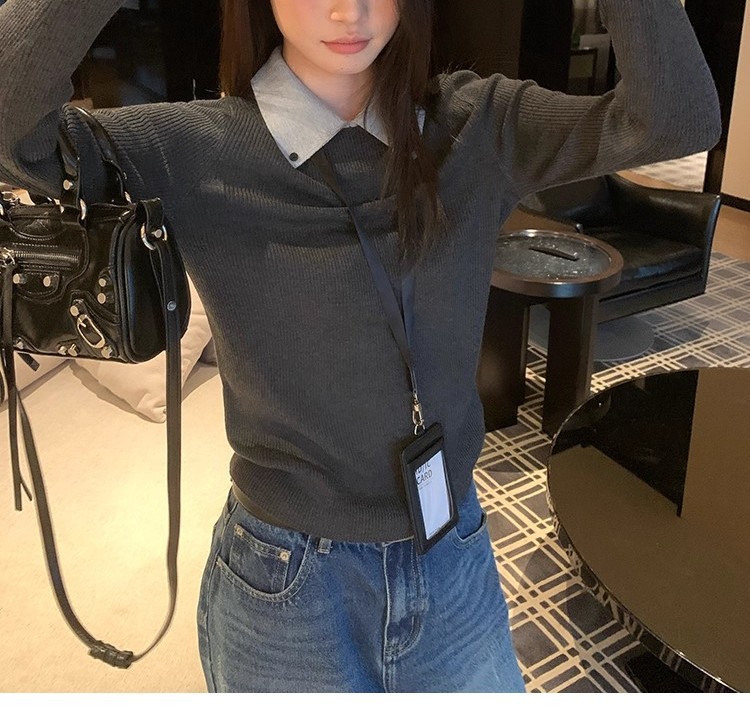 宋正恩灰色假两件针织衫内搭早秋修身小众设计感巨好看的长袖上衣