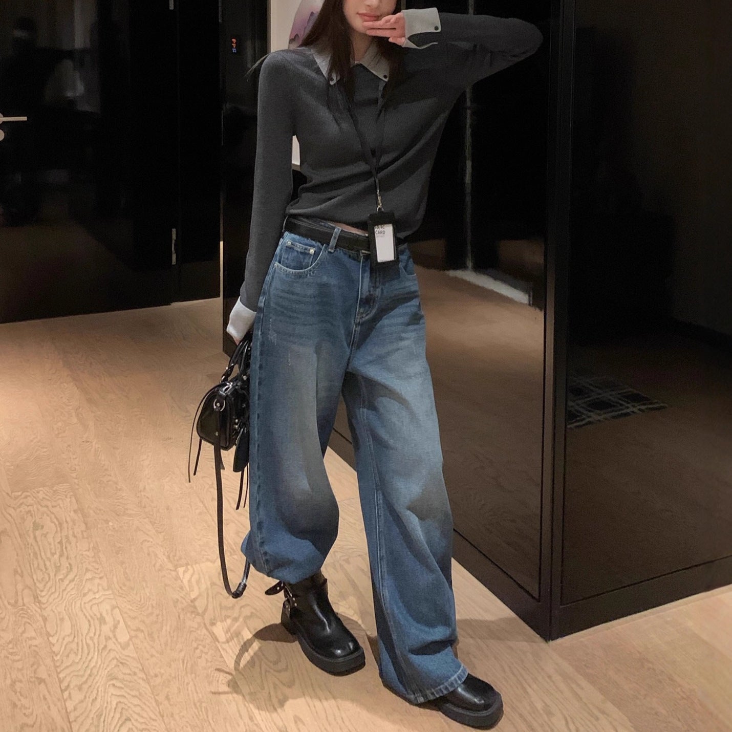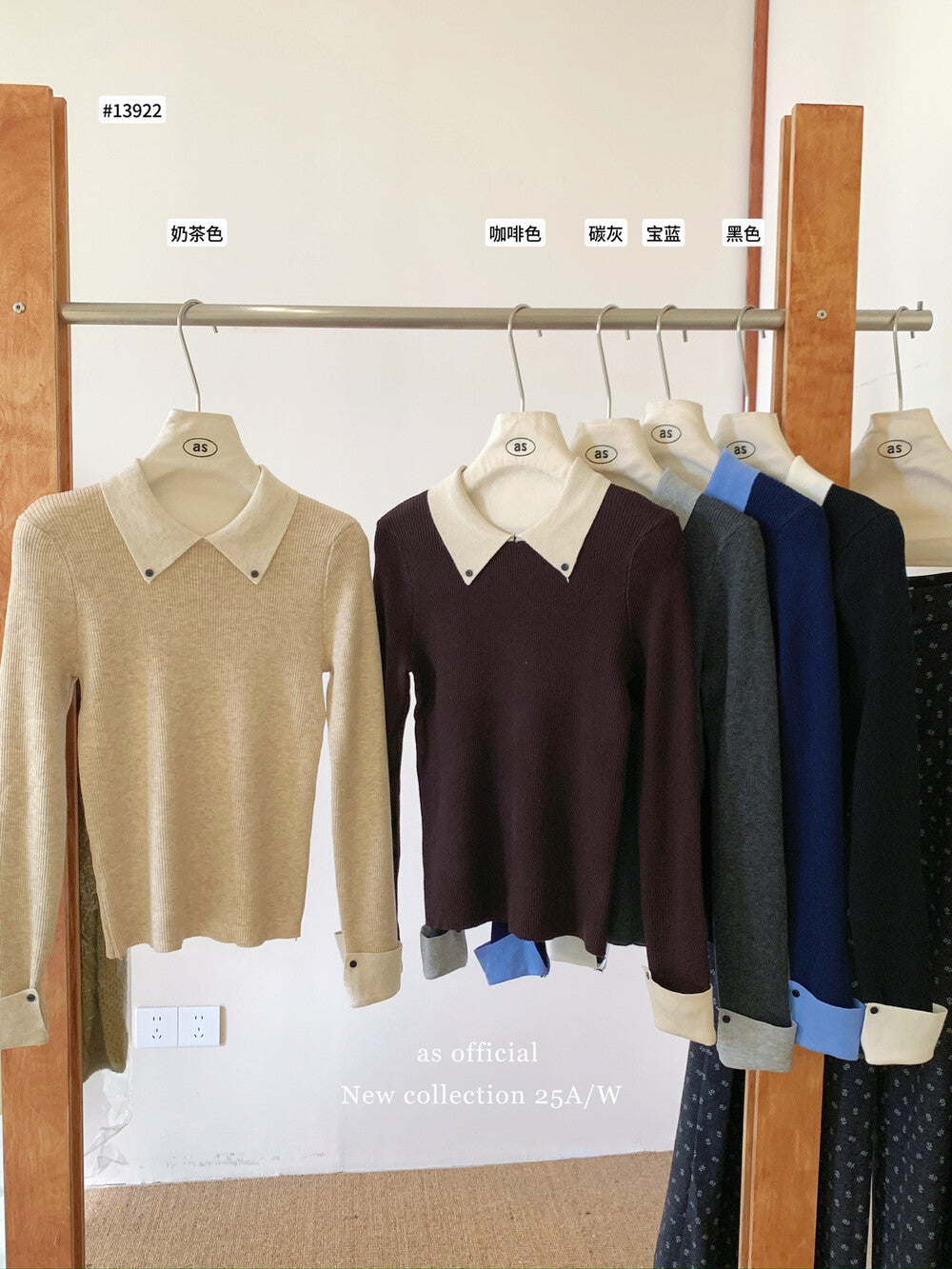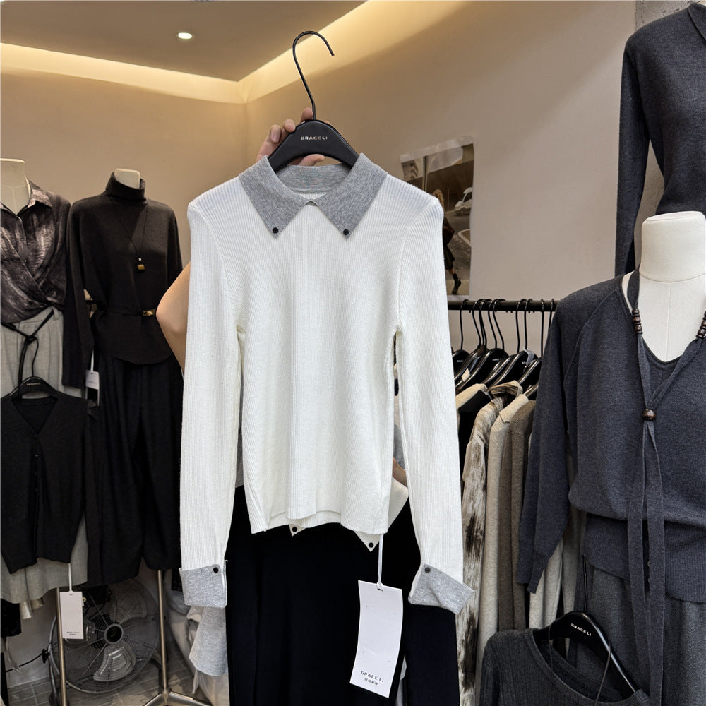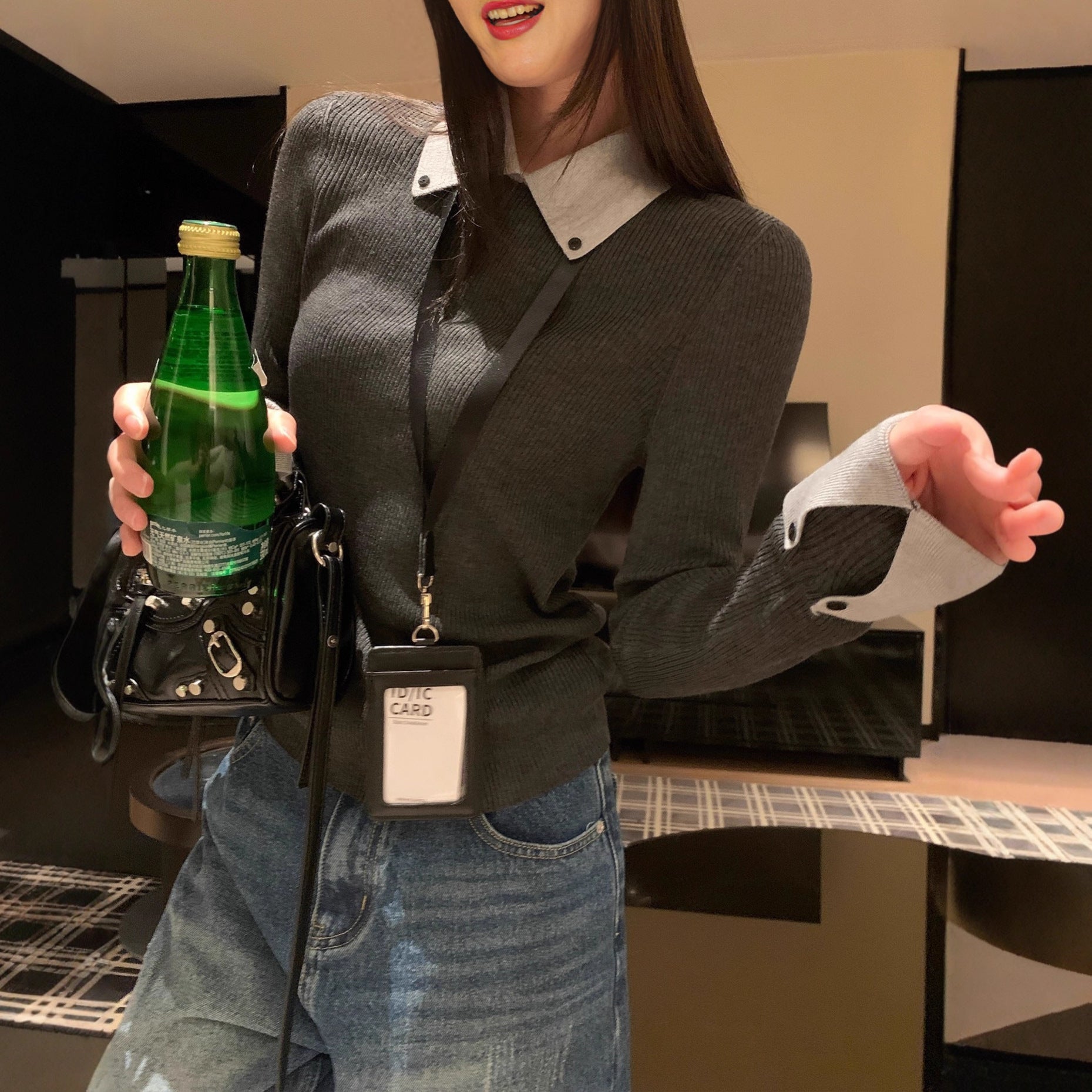 宋正恩灰色假两件针织衫内搭早秋修身小众设计感巨好看的长袖上衣