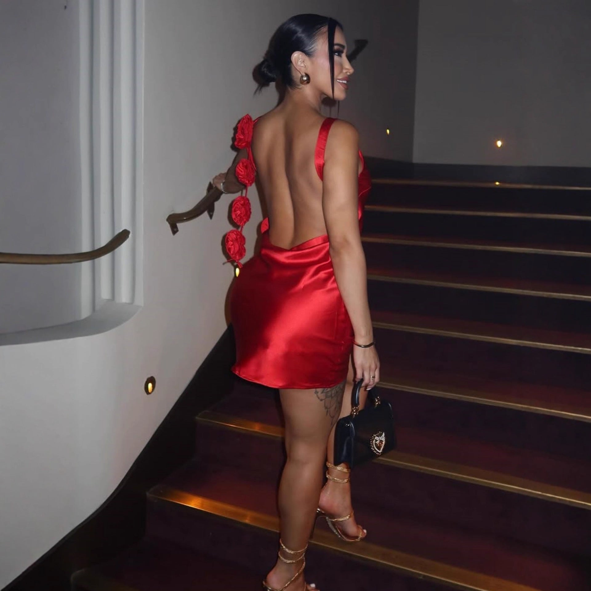 Pure desire three-dimensional flower decoration sleeveless hip hugging skirt