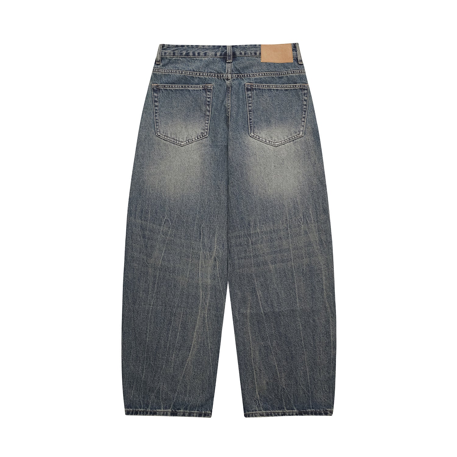 Washed Distressed Cat Whisker Pattern Loose Wide-Legged Knife-Edge Jeans